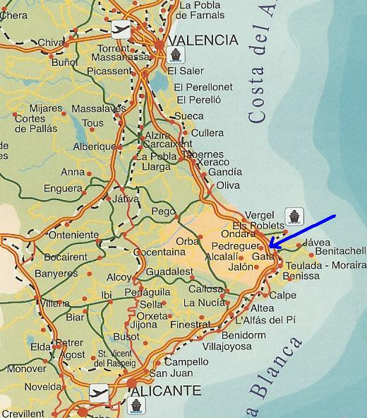 Villalinga is approx 50 minutes drive North from Alicante airport (or 1hr South of the airport at Valencia).